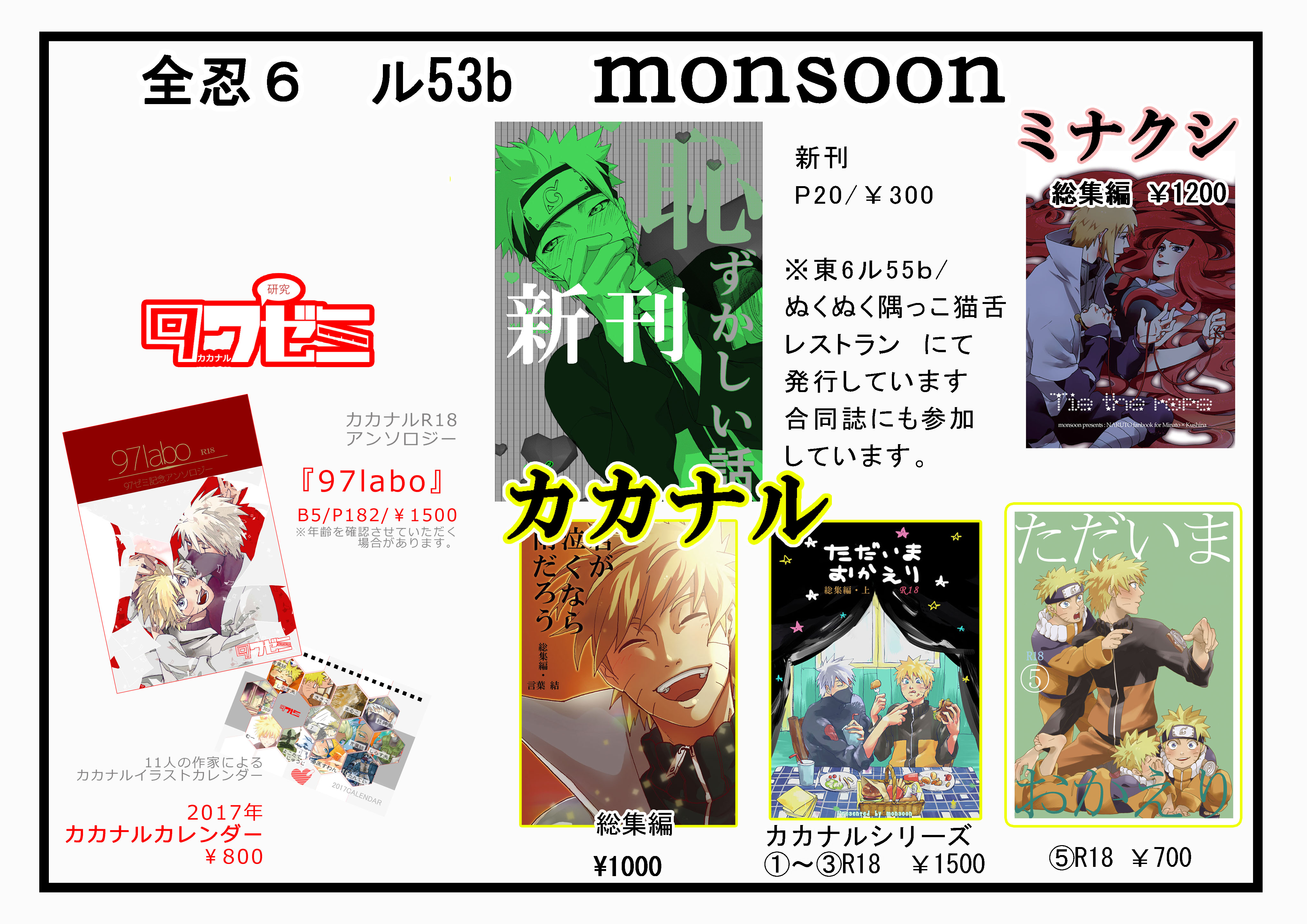 言葉結の個人サークル『monsoon』による同人、カカナル中心の内容を含みます。原作には全く関係ありません。意味のわからない方、苦手な方はもとのページに戻ってください。内容に関しての苦情、誹謗中傷は一切受け付けません。