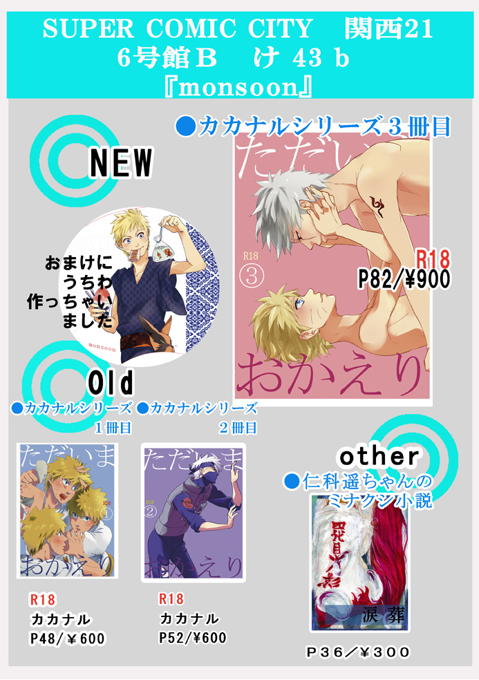 言葉結の個人サークル『monsoon』による同人、カカナル中心の内容を含みます。原作には全く関係ありません。意味のわからない方、苦手な方はもとのページに戻ってください。内容に関しての苦情、誹謗中傷は一切受け付けません。
